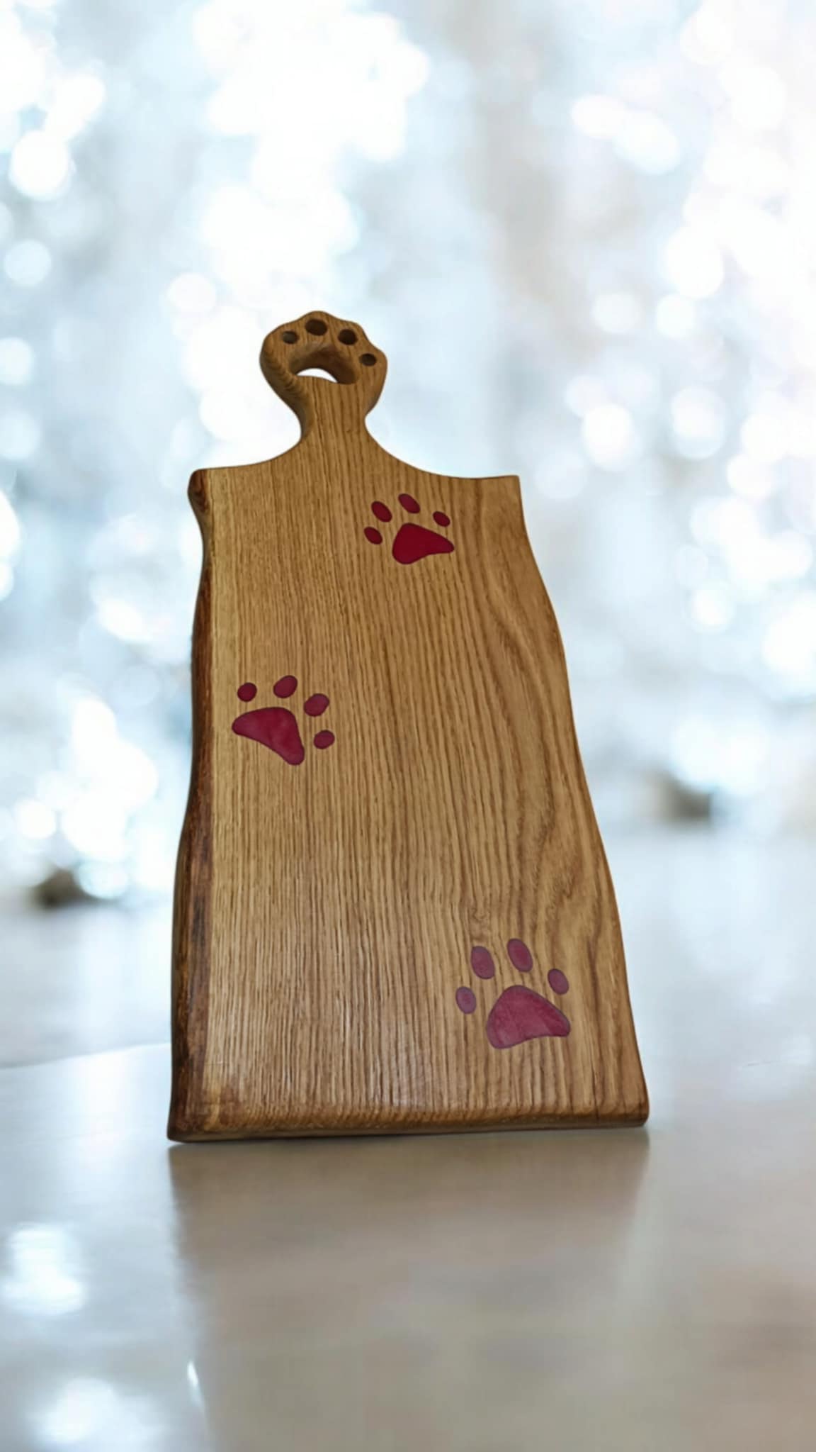 Dubové prkénko s růžovými tlapičkami