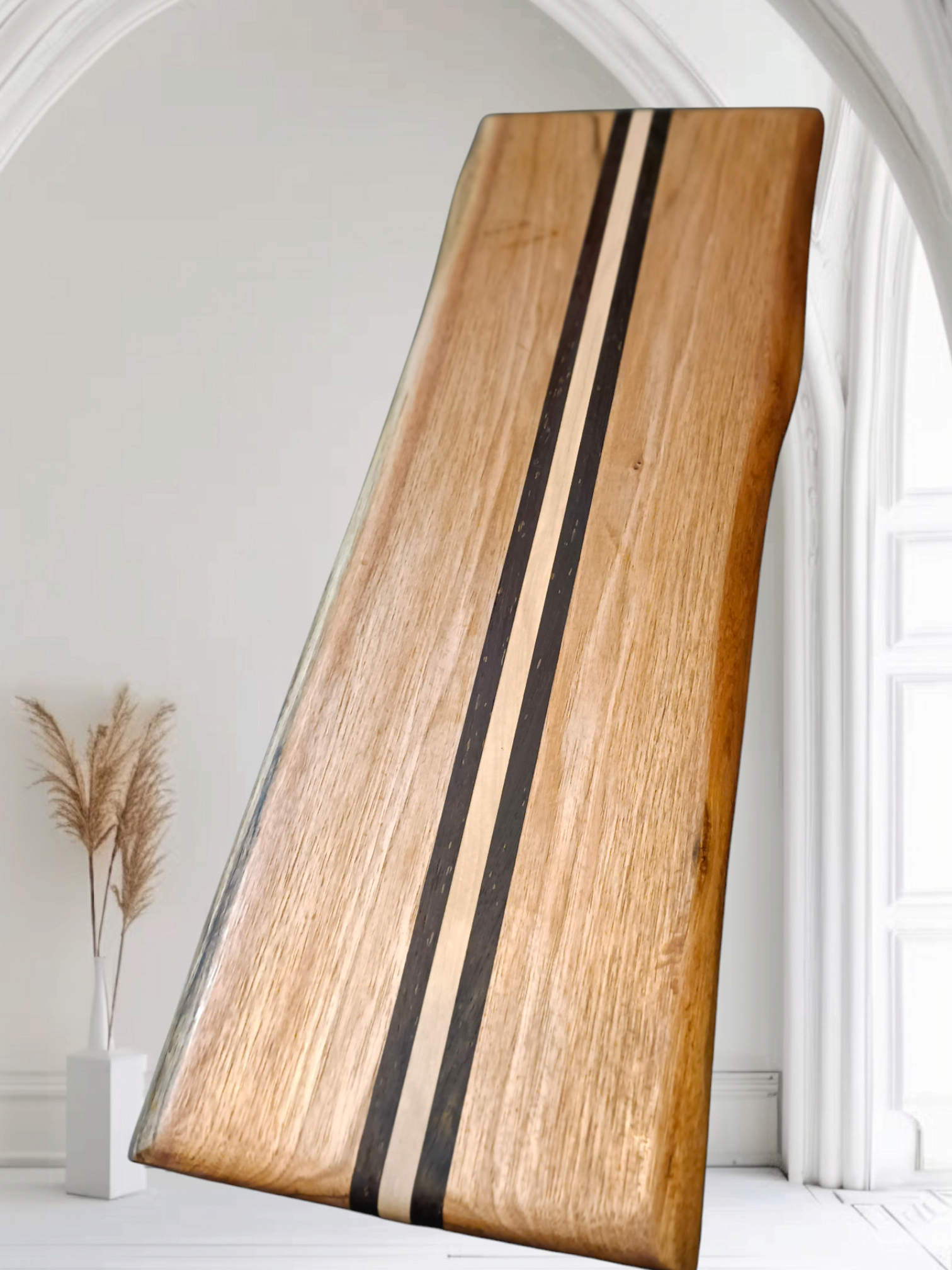 🪵💛Toto luxusní dřevěné prkénko je vyrobeno z kvalitního červeného dubu, doplněného kontrastními proužky exotického wenge a světlého habru. Díky pečlivému ručnímu zpracování vyniká svou jedinečnou kresbou dřeva a odolností.